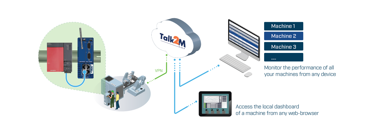 Ví dụ: cùng lúc, bạn có thể kết nối với PLC dòng FX bằng cổng nối tiếp Ewon và kết nối với (hoặc nhiều) PLC Q-Series bằng (các) cổng Ethernet Ewon.