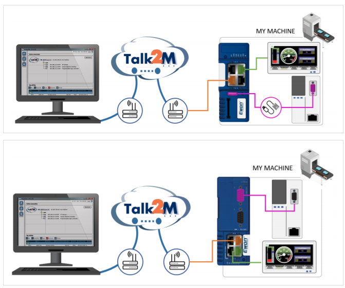 Cấu hình của Ewon có thể hơi khác nếu kết nối giữa PLC và Ewon là dựa trên nối tiếp hoặc Ethernet. Bạn có thể kết hợp cả hai kiểu kết nối mà không gặp vấn đề gì.
