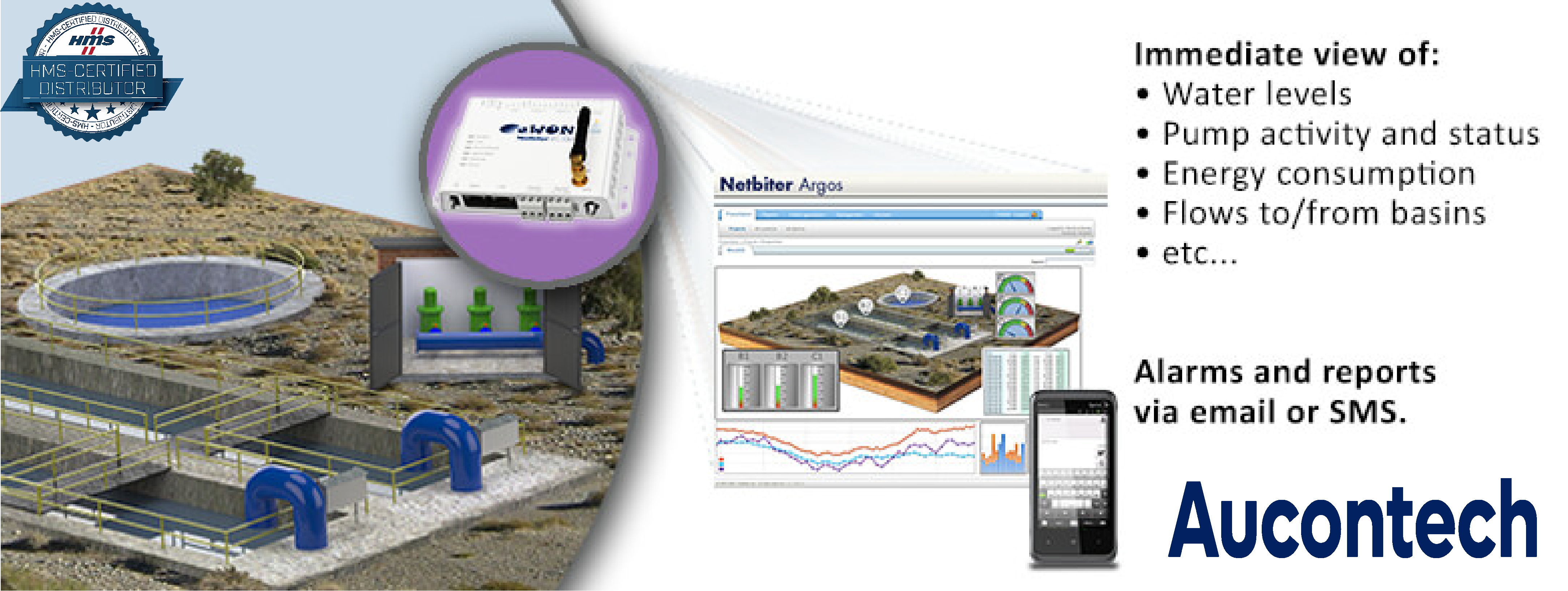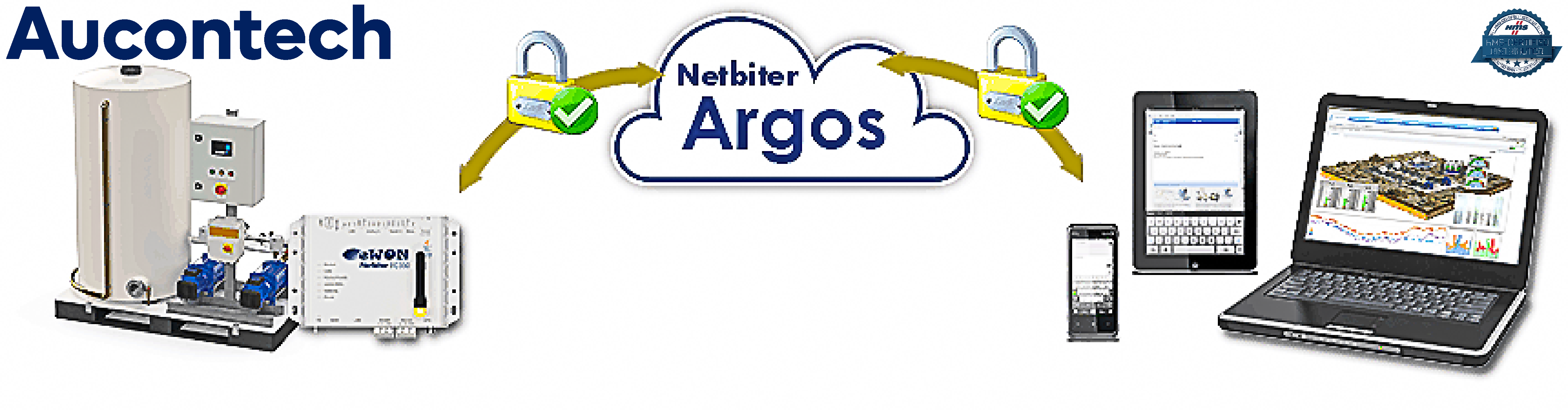 Cổng giao tiếp Netbiter kết nối với đồng hồ đo mức bể chứa, máy bơm, cảm biến của bạn, v.v. Netbiter kết nối với thiết bị bằng kết nối nối tiếp, Ethernet hoặc I / O và gửi thông tin qua Internet hoặc mạng di động (GSM / GPRS / 3G / 4G) tới trung tâm dữ liệu Netbiter Argos dựa trên đám mây.