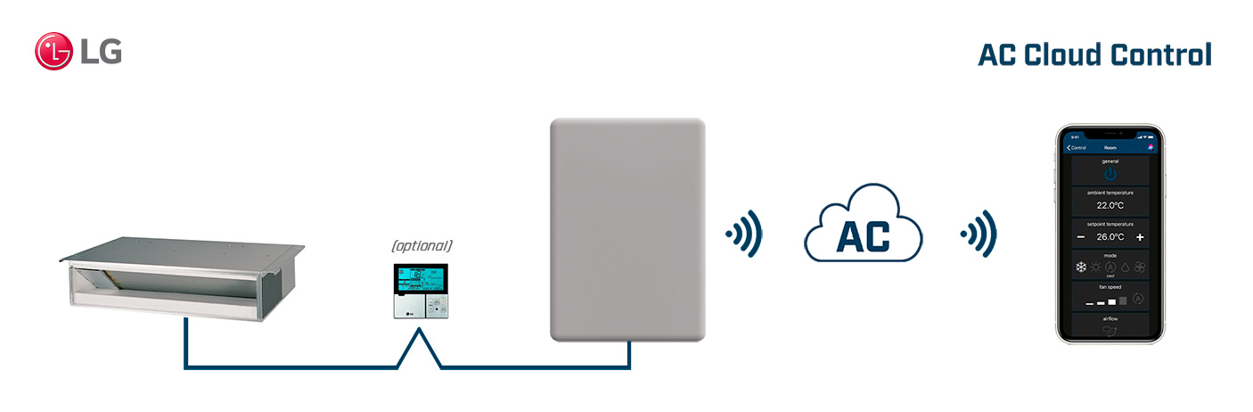 The AC Cloud Control device for LG allows a complete and natural integration of LG VRF systems into AC Cloud Control system for profesional HVAC control and monitoring.