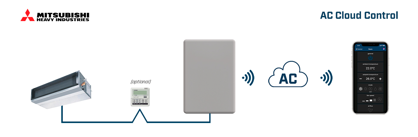 The AC Cloud Control device for Mitsubishi Heavy Industries allows a complete and natural integration of Mitsubishi Heavy Industries FD and VRF systems into AC Cloud Control system for profesional HVAC control and monitoring.